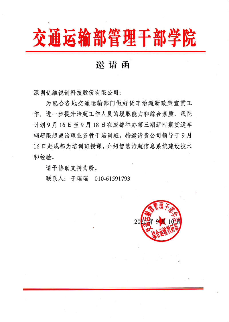 次 2020年9月15日至18日,由交通運輸部管理干部學院主辦、四川省公路局協(xié)辦的第三期新時期貨運車輛超限超載治理業(yè)務(wù)骨干培訓班在成都舉辦,深圳億維股份受邀到現(xiàn)場為各位領(lǐng)導(dǎo)、學員分享先進治超技術(shù)。