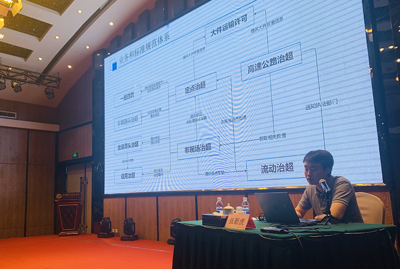 ▲交通運輸部規(guī)劃研究院張新虎高級工程師講述全國治超聯(lián)網(wǎng)管理信息系統(tǒng)如何建設(shè),他提到建設(shè)的核心思路是與業(yè)務(wù)深度結(jié)合,建設(shè)模式是“1個部級系統(tǒng)”+“32個省級系統(tǒng)”。治超聯(lián)網(wǎng)管理系統(tǒng)八大核心業(yè)務(wù)應(yīng)該涵蓋:公路超限檢測站治超、流動治超、高速公路治超、非現(xiàn)場執(zhí)法、貨運源頭監(jiān)管、“一超四罰”、信用治超、大件運輸許可管理。需做到部省互聯(lián),實現(xiàn)跨區(qū)域、跨部門信息共享。