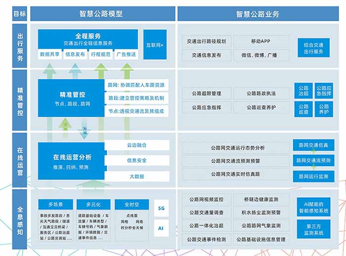 智慧公路綜合管理系統(tǒng)以實現(xiàn)“智慧監(jiān)測、智慧管理、智慧決策、智慧服務(wù)”為目標(biāo),系統(tǒng)利用大數(shù)據(jù)、云計算、人工智能等技術(shù),實現(xiàn)交通掌控精細(xì)化,構(gòu)建智慧交通體系“大腦”。